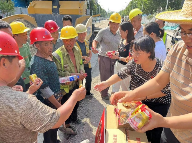 走進工地現(xiàn)場,為一線職工發(fā)放面包、香腸、飲料等,了解項目部施工進展及項目人員生產(chǎn)生活、勞動保護、防暑降溫措施等情況,切實為職工創(chuàng)造一個安全、健康的工作環(huán)境。