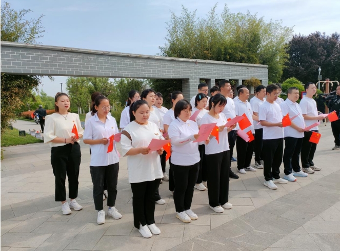 共唱《歌唱祖國(guó)》;第二項(xiàng)由中心黨委機(jī)關(guān)第三黨支部書(shū)記閻素琴帶領(lǐng)大家重溫入黨誓詞;第三項(xiàng)由各基層黨組織表演節(jié)目,我支部合唱的《強(qiáng)軍戰(zhàn)歌》,唱出了我們黨和祖國(guó)領(lǐng)贊新時(shí)代黨員的新風(fēng)貌;第四項(xiàng)中心黨委領(lǐng)導(dǎo)班子成員為大家發(fā)放“文明出行”“健康生活”倡議書(shū);最后一項(xiàng)中心黨委書(shū)記、主任郭鋒作重要講話,宣布健步走活動(dòng)開(kāi)始。