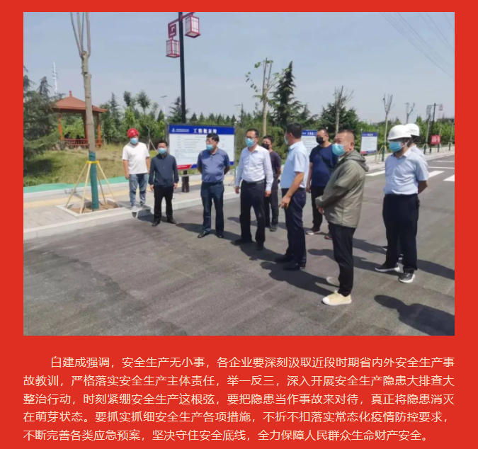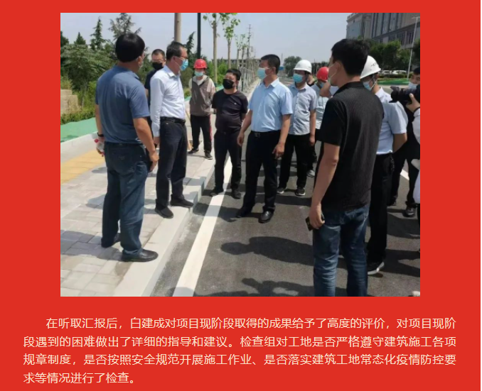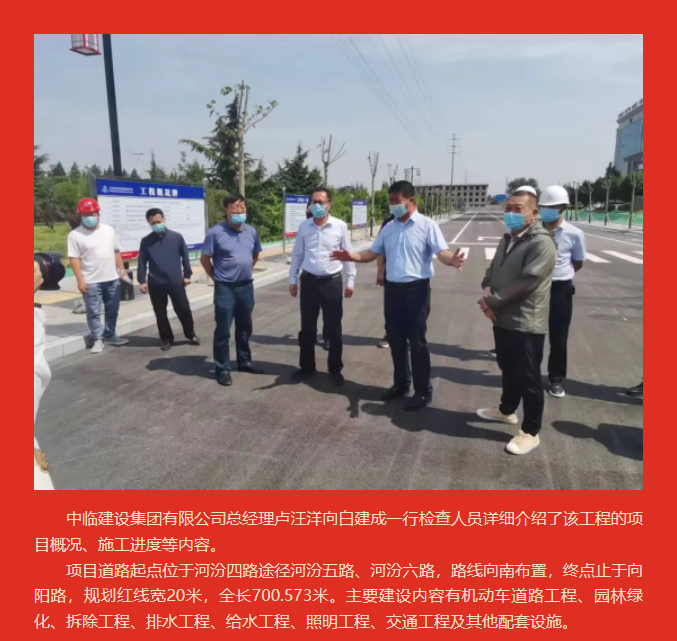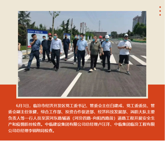 臨汾市經濟開發(fā)區(qū)黨工委書記、管委會主任白建成一行到濱河東路輔道(河汾四路-向陽西路段)道路工程開展安 全生產和疫情防控檢查